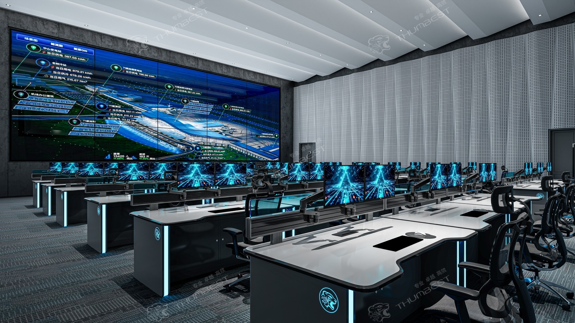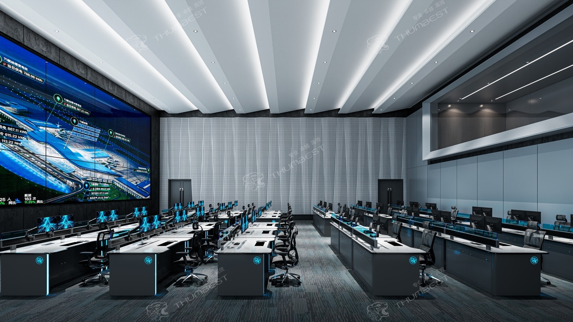 控制台系统支持多岗位、多屏、多系统协作,集成交易终端、市场数据显示、风险监控和通信调度功能,实现多源信息的集中展示、快速处理与高效指挥。整体设计遵循人体工程学原则,台面采用防反光、防静电、耐磨材料,边角圆滑处理,内部设备舱和线缆通道采用规范化布线和阻燃材料,确保长期值守操作的舒适性和系统运行的稳定性。